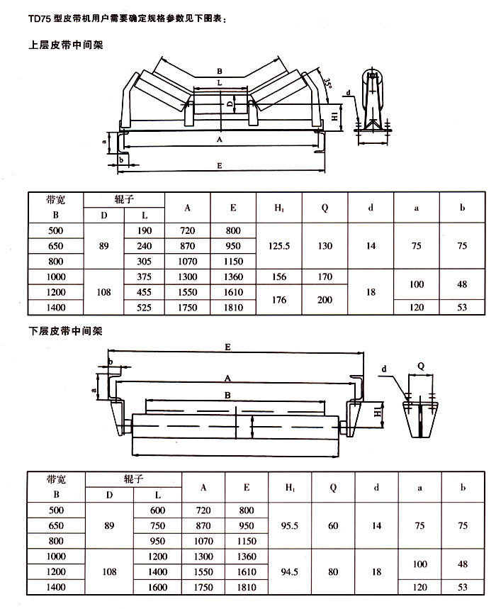(1)Ⅰ型系列,适用于TD75型皮带机