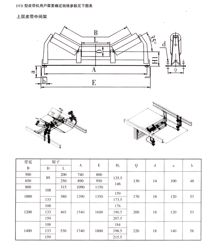 1、为了安装方便、性能可靠,建议用户选用本公司与之相配套的专用调心托辊,并提供辊子直径(89/108/133/159)