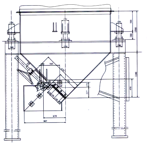 概述 本公司在消化吸收国内外先进技术和多年现场实践的基础上,自行研制出了焦碳、杂矿、槽下、中间溜槽等各种规格、型号的称量漏斗,机、电、 液、仪一体,手动、液动两用,结构简单、动作灵活,目前已成功应用于冶金、矿山、电力、建材、煤炭等行业。 工作原理 漏斗载料达到规定要求时 , 传感器发出信号至液压系统,系统动作,驱动单个或多个油缸,打开闸板,从而实现定量卸料。 外形示意图