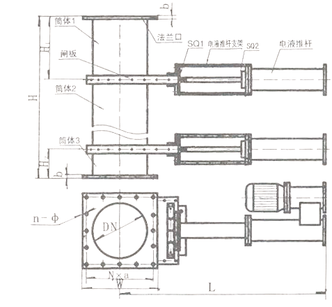 电液动金属硬密封卸灰阀门示意图