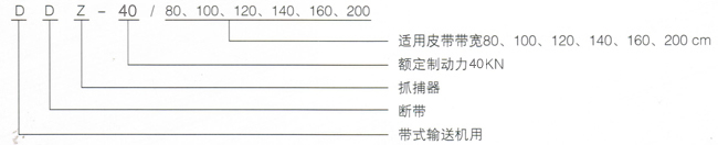 DDZ-40/80□100□120□140□160□200型带式输送机用断代抓捕器沿带式输送机多处安装,当皮带正常运行时,中部的单向轮随皮带转动,左右两模型闸块处于皮带下方且与皮带不接触,上闸块调整到皮带两侧,且与皮带纵向平行。