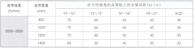上断带抓捕器的安装间距(m)-(参考值)